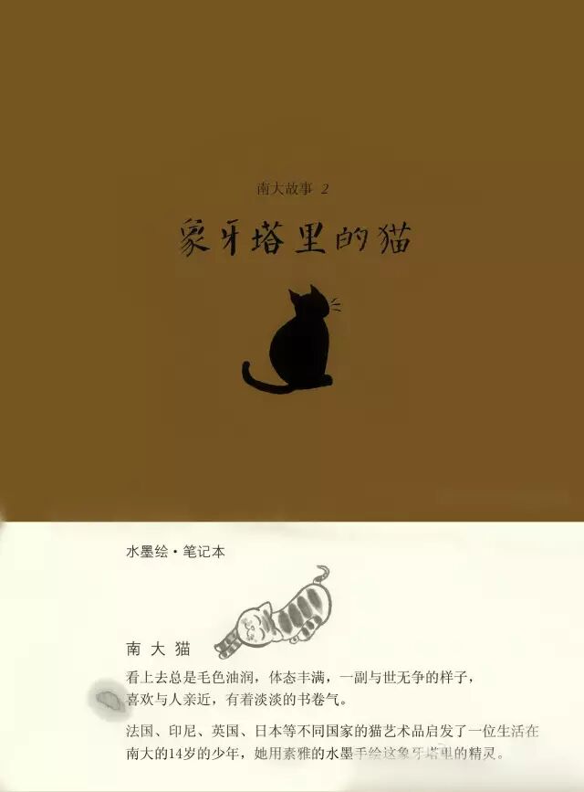 在谈及第二册用水墨片表达的《象牙塔里的猫》时,杨老师难掩欣悦之情。毛色油润且体态丰满,与世无争却与人亲近,大有“普天之下莫非‘黄’土,率土之滨莫非‘黄’臣”架势的,非南京大学的猫莫属。它们作为南大的独特名片,文化灵性十足,为南大在“大学情怀排行榜”上名列前茅贡献良多,不得不使人难以忘怀。