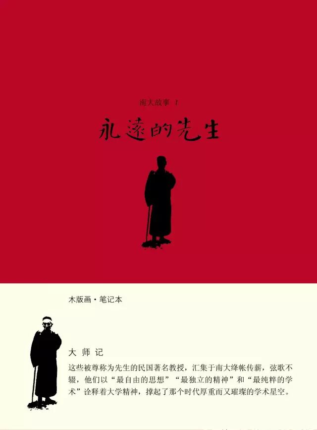 第一册题名《永远的先生》,纪念那些汇聚于南大绛帐传薪、弦歌不辍而广受尊敬的民国著名教授。杨小民老师在表现形式上颇下了一番心思,最终选用了人物木刻画的手法。在他看来,那些以“自由的思想、独立的精神、纯粹的学术”诠释大学精神、撑起那个时代厚重而又璀璨学术天空的南大老先生们,拥有着作为知识分子独特的精神类型和特质,唯有木刻画富于表现力和线条感的艺术手法最能与之相得益彰。